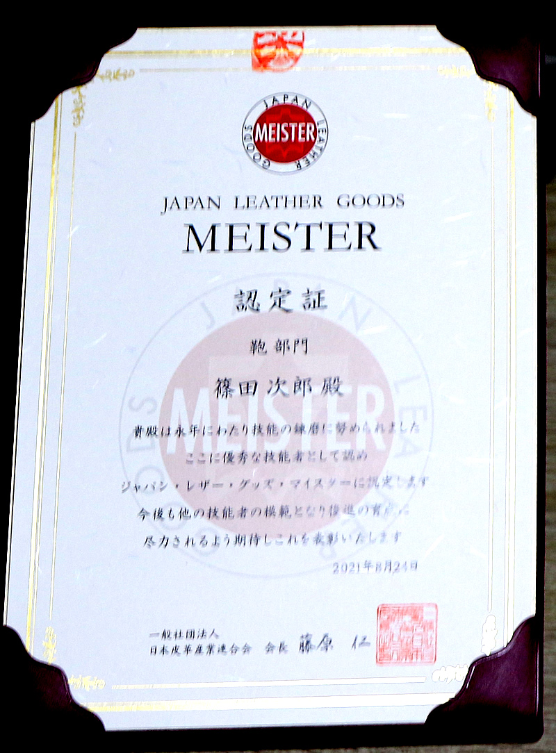 ・令和3年:篠田次郎が第4回 日本皮革製品マイスター認定(鞄部門)に認定